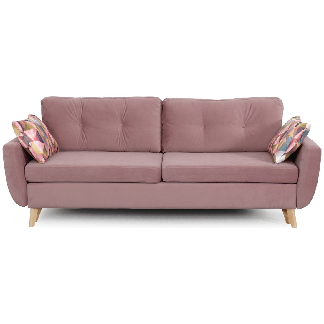 Благодаря тому, что основание модели приподнято над полом, диван не выглядит «тяжелым». Напротив, конструкция добавляет «воздуха» в интерьер. Опоры дивана изготовлены из натурального дерева (береза).