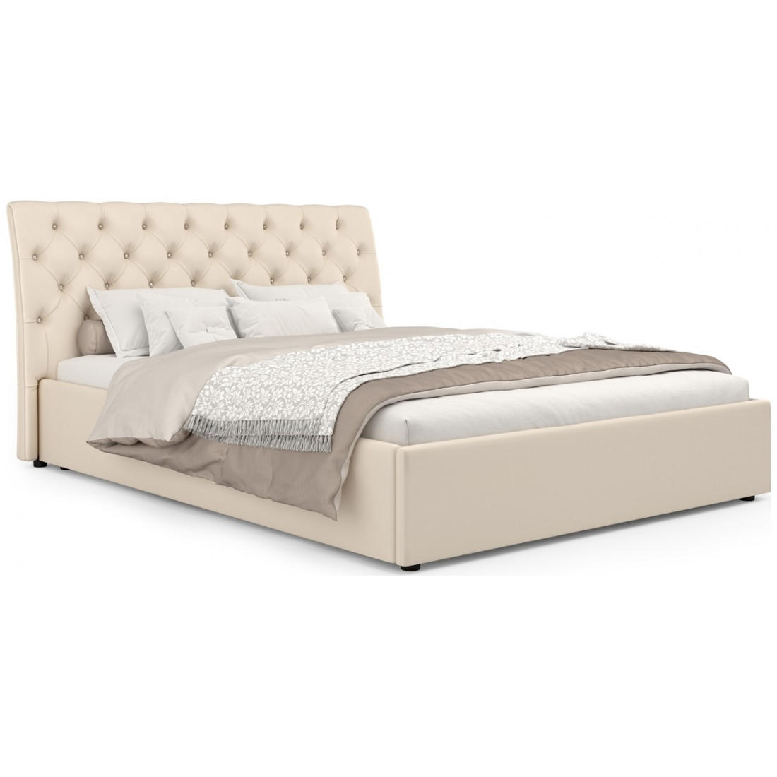 Кровать можно комплектовать ортопедическим основанием на пяти опорах или бельевым ящиком с подъемным ортопедическим основанием.