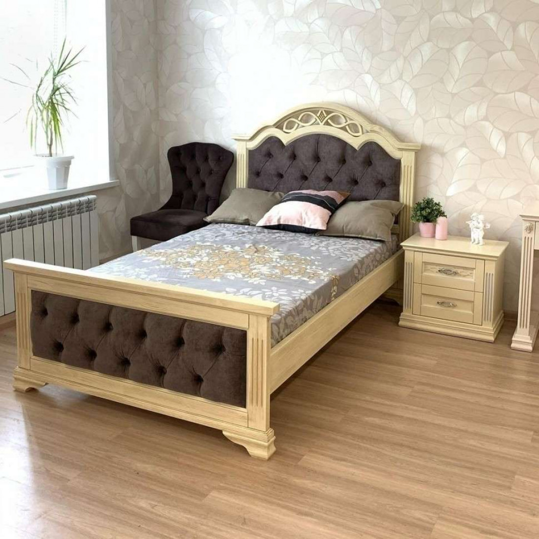 Двуспальная кровать Венеция MUR-101-01 с каретной стяжкой