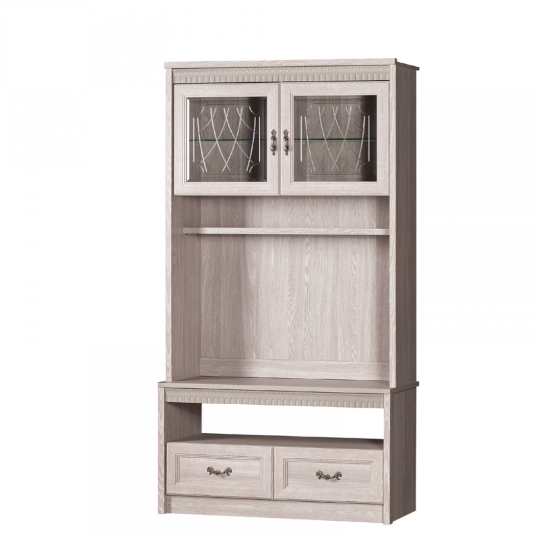 Фасады: МДФ, декор – дуб оксфорд серый, патина, зеркало с фацетом
