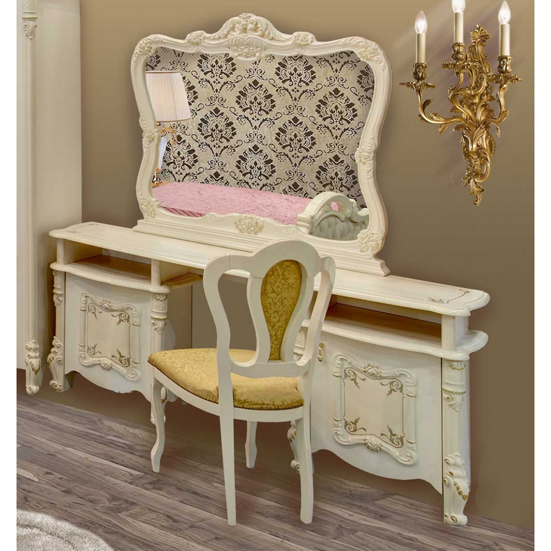 Спальня Рафаэлла от Российской фабрики «ДИА мебель», выполнена в элегантно нежном бежевом цвете. Такая спальня в сочетании с глянцевым покрытием и резной вставкой придаст незабываемую атмосферу роскоши. Большая комфортабельная кровать окунет Вас в незабываемый крепкий сон. Объемный четырехстворчатый шкаф поможет забыть о лишних вещах и сделать комнату многофункциональной. Большое зеркало визуально расширит пространство. Вся коллекция «Рафаэлла» предназначена для людей умеющих по достоинству оценить комфорт.