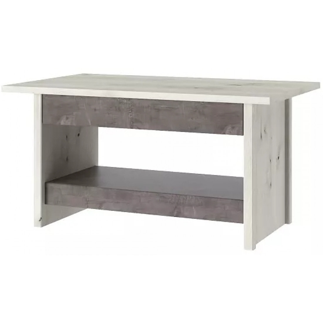 Журнальный столик Бьёрк 1S — предмет современной коллекции в стиле Loft, где все элементы мебели выполнены в декорах ольха полярная и оникс с использованием уникальной структуры плиты.